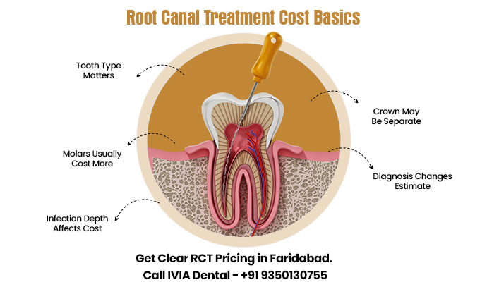 The answer is simple. The cost of root canal treatment in Faridabad usually depends on which tooth is affected, how deep the infection is, and whether you need a crown after the procedure. IVIA Dental explains root canal treatment as a procedure that removes infected pulp, relieves pain, and helps preserve the natural tooth. Our USP includes advanced equipment, personalised care, and comprehensive evaluation for treatment planning.